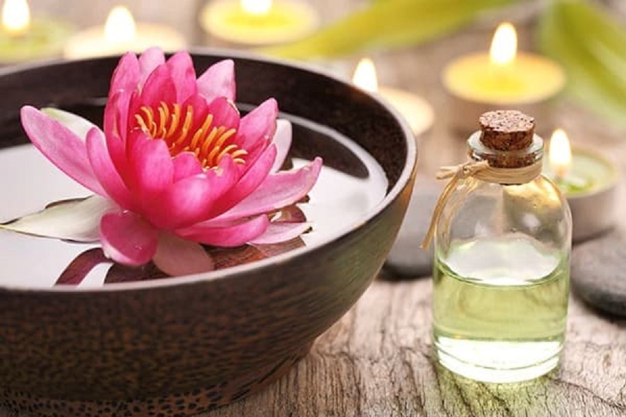 Massage: Hòa 3 – 4 giọt tinh dầu hoa sen cùng dầu nền và massage nhẹ nhàng