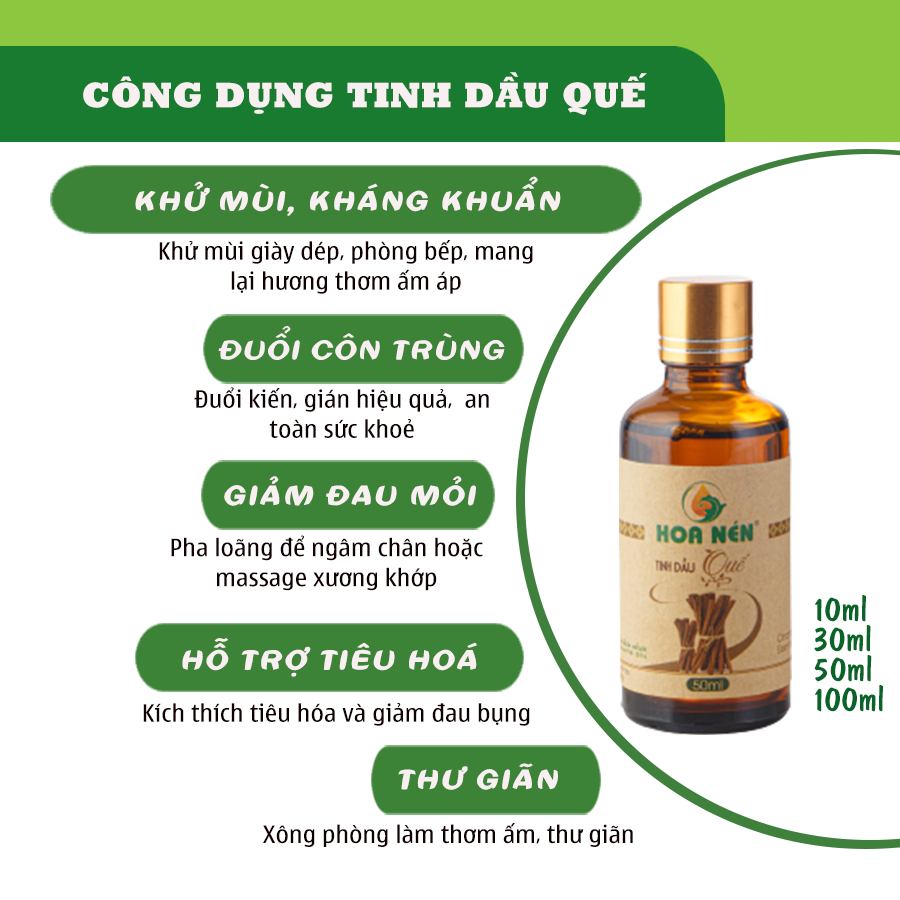 ✨Tinh dầu Quế nguyên chất Hoa Nén 3ml- 100ml - Đuổi côn trùng, khử mùi, lọc không khí
