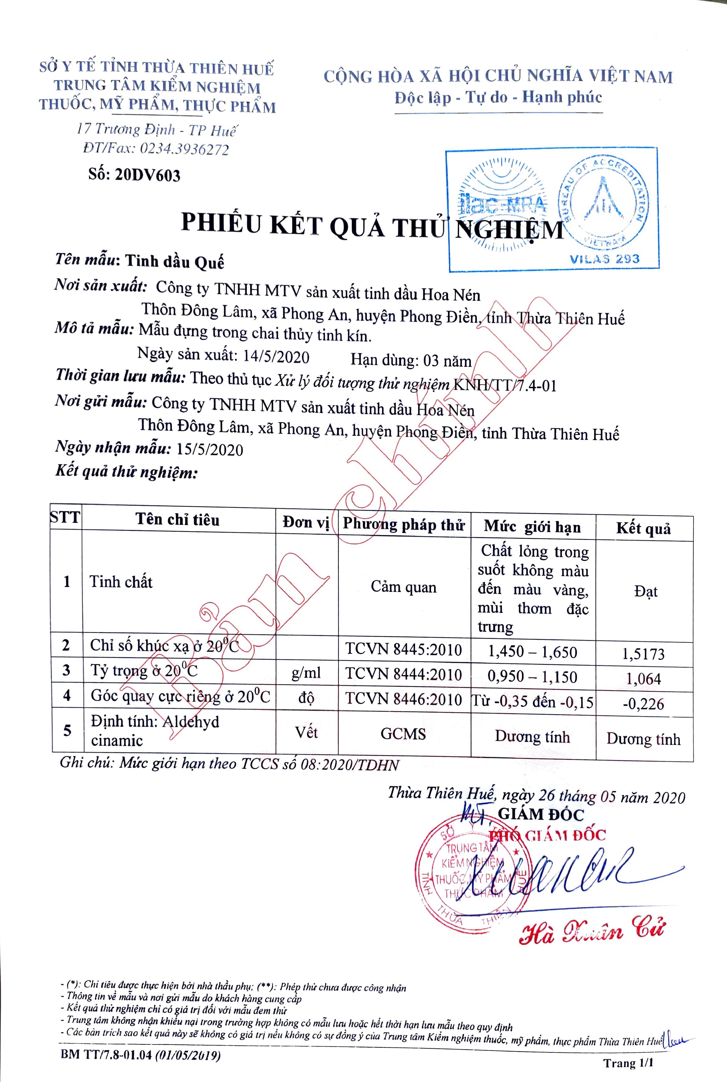 Tinh dầu quế được chiết xuất từ cành lá và vỏ cây quế bằng phương pháp lôi cuốn hơi nước, không chất bảo quản, không hương liệu. Thành phần chính là cinnamaldehyde có thể lên đến 90%. CÔNG DỤNG: