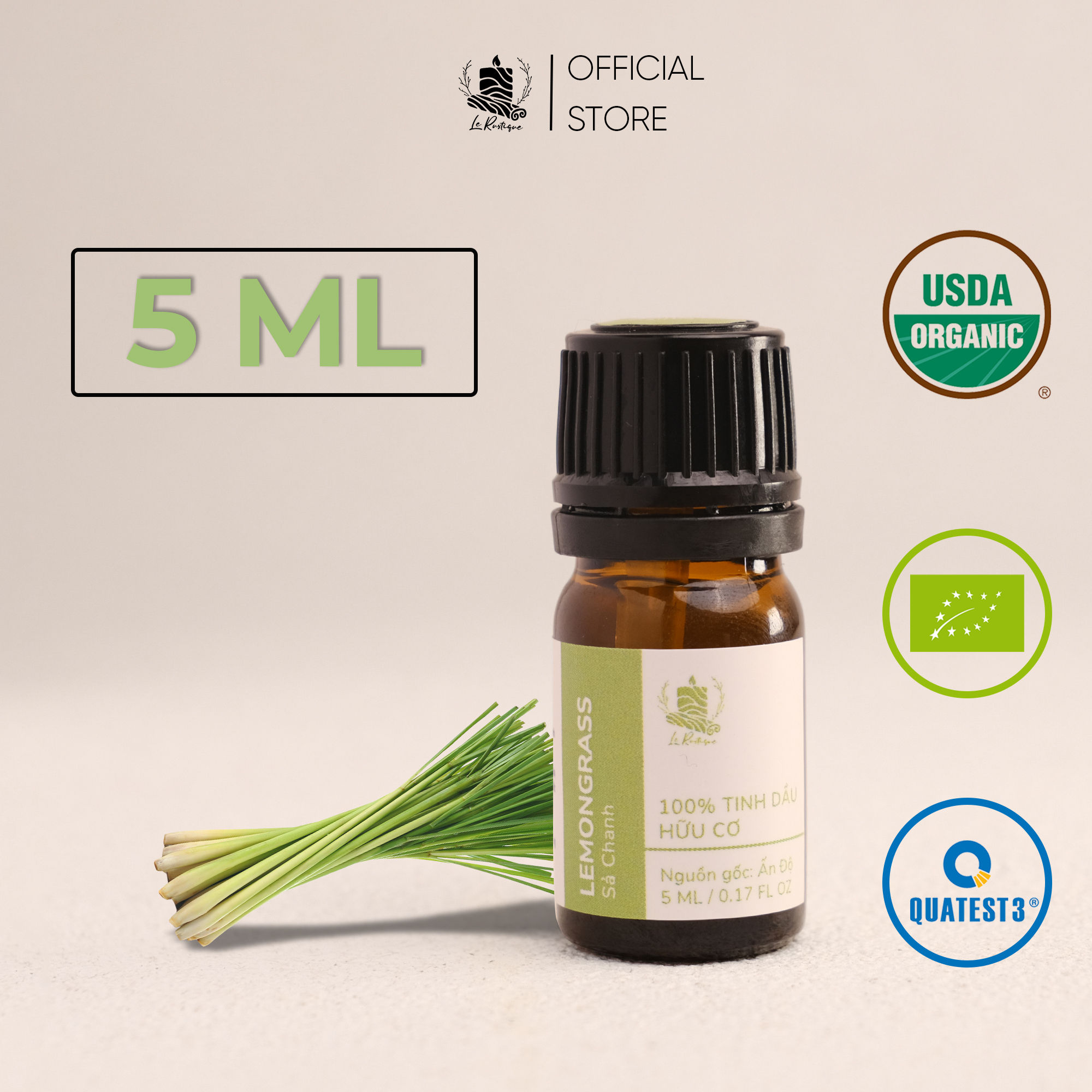 ► Sản phẩm: Tinh Dầu Sả Chanh - 100% Nguyên Chất Hữu Cơ - Le Rustique - Tinh Dầu Bản Địa Ấn Độ ► Tên thực vật: Cymbopogon flexuosus ► Họ: Poaceae (Gramineae) ► Nguồn gốc: Ấn Độ ► Phương pháp lấy tinh dầu: Chưng cất hơi nước ► Bộ phận: Lá cây sả chanh   ► Tinh dầu Sả Chanh (Lemongrass) là dòng tinh dầu nguyên chất hữu cơ nguồn gốc từ Ấn Độ, đạt chứng nhận hữu cơ USDA-Organic/Organic EU. Tinh dầu Sả Chanh mang lại cảm giác sảng khoái, giúp thư giãn cơ thể và giảm căng thẳng. Hơn nữa, Sả Chanh còn được biết đến với khả năng làm sạch không khí và xua đuổi côn trùng hiệu quả.   ► THÀNH PHẦN: 100% tinh dầu sả chanh hữu cơ với các thành phần chính như: Geranial - Citral A (35-47%), Neral - Citral B (25-40%), Geranyl acetate (0,5-6,0%), Geraniol (1,5-8,0%). Quét mã QR để xem kết quả phân tích GC-MS về hàm lượng của các thành phần trong tinh dầu. NSX, HSD, Số Lô: Xem trên bao bì   ► HƯỚNG DẪN SỬ DỤNG: Khuếch tán vào không khí bằng cách sử dụng 2-3 giọt tinh dầu cho mỗi 100ml nước hoặc sử dụng trong bình xịt. Nếu sử dụng bình xịt, cần lắc đều trước mỗi lần xịt. Nếu sử dụng máy khuếch tán, để máy ở vị trí lưu thông gió tốt để hỗ trợ khuếch tán mùi hương. Khi sử dụng trên da, cần pha loãng với nồng độ tối đa 0,16% (tương đương 4 giọt trên 125ml dầu nền - ứng với quy đổi 20 giọt bằng 1ml).   ► CHỈ DẪN SỰ DỤNG AN TOÀN THEO ĐỐI TƯỢNG: