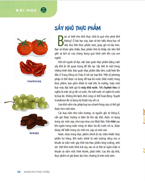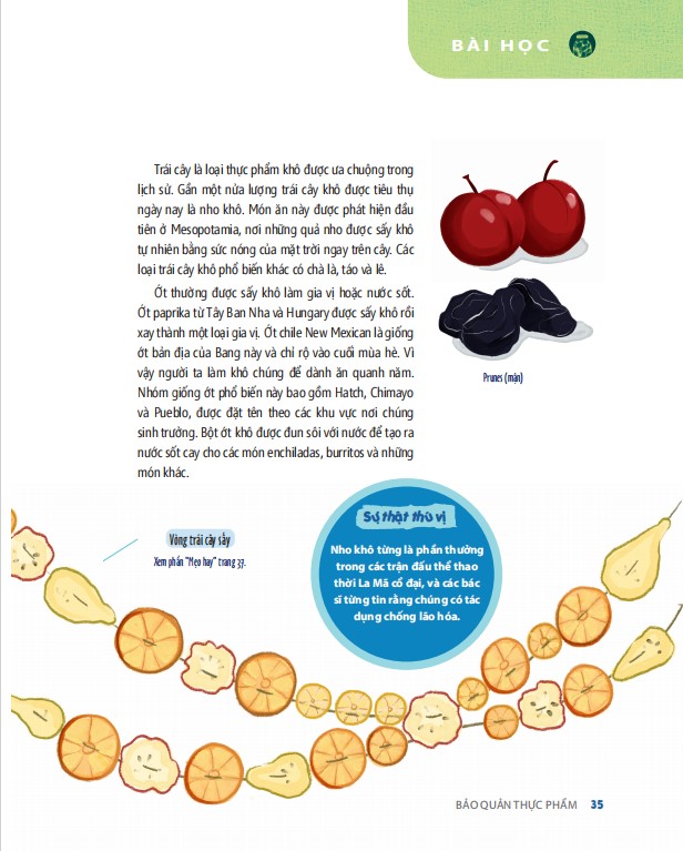 Bài học, sự thật thú vị về món ăn: Các bài học được minh hoạ đầy màu sắc, giúp độc giả tìm hiểu và nghiên cứu về 20 loại thực phẩm khác nhau. Chúng ta sẽ cùng tìm hiểu lịch sử của những loại thực phẩm này, bao gồm cả nguồn gốc của chúng và các món ăn phái sinh có liên quan.