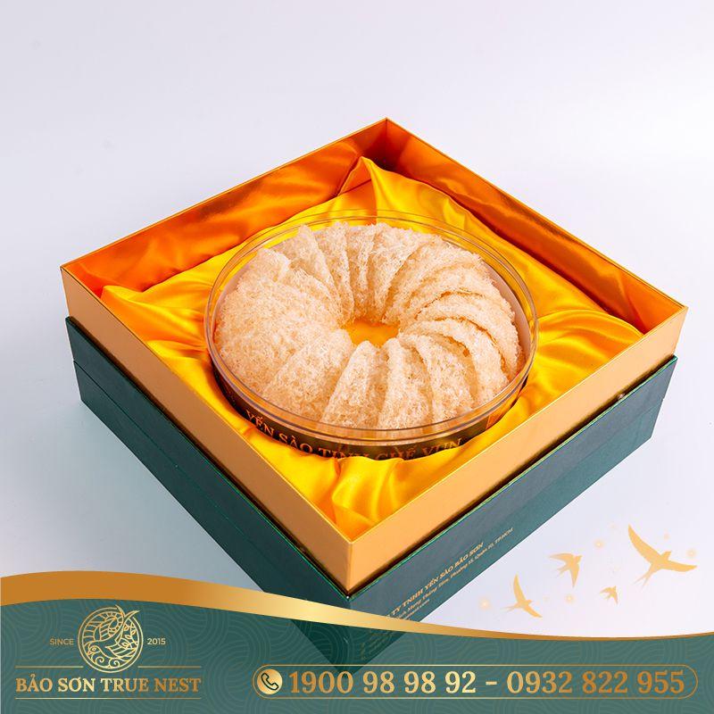 Với sản phẩm tươi sống, trọng lượng thực tế có thể chênh lệch khoảng 10%. BẢO SƠN TRUE NEST - NHẤT PHẨM BÁT TRÂN Sản phẩm : Tổ yến tinh chế vụn tròn - ĐẶC
