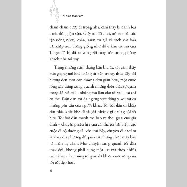 Thông qua cuốn sách của Erica Layne, hãy cùng khám phá cách áp dụng lối tư duy tối giản vào mọi khía cạnh của cuộc sống bằng cách thay đổi cách bạn nghĩ về nhà cửa, sự nghiệp, các mối quan hệ, gia đình và tiền bạc... Với triết lý thực tế, các bài tập và hoạt động đơn giản cùng các chiến lược dễ áp dụng để loại bỏ những phiền nhiễu và căng thẳng không cần thiết, đây là cuốn sách hướng dẫn cần thiết cho bất cứ ai muốn giải tỏa sự lộn xộn về thể chất, tinh thần và cảm xúc.