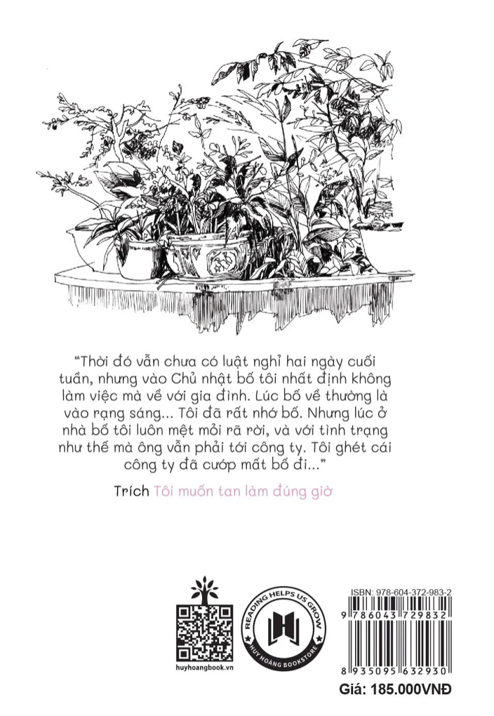 I.Giới thiệu sách“Thời đó vẫn chưa có luật nghỉ hai ngày cuối tuần, nhưng vào Chủ nhật bố tôi nhất định không làm iệc mà về với gia đình. Lúc bố về thường là vào rạng sá Tôi đã rất nhớ bố. Nhưng lúc ...