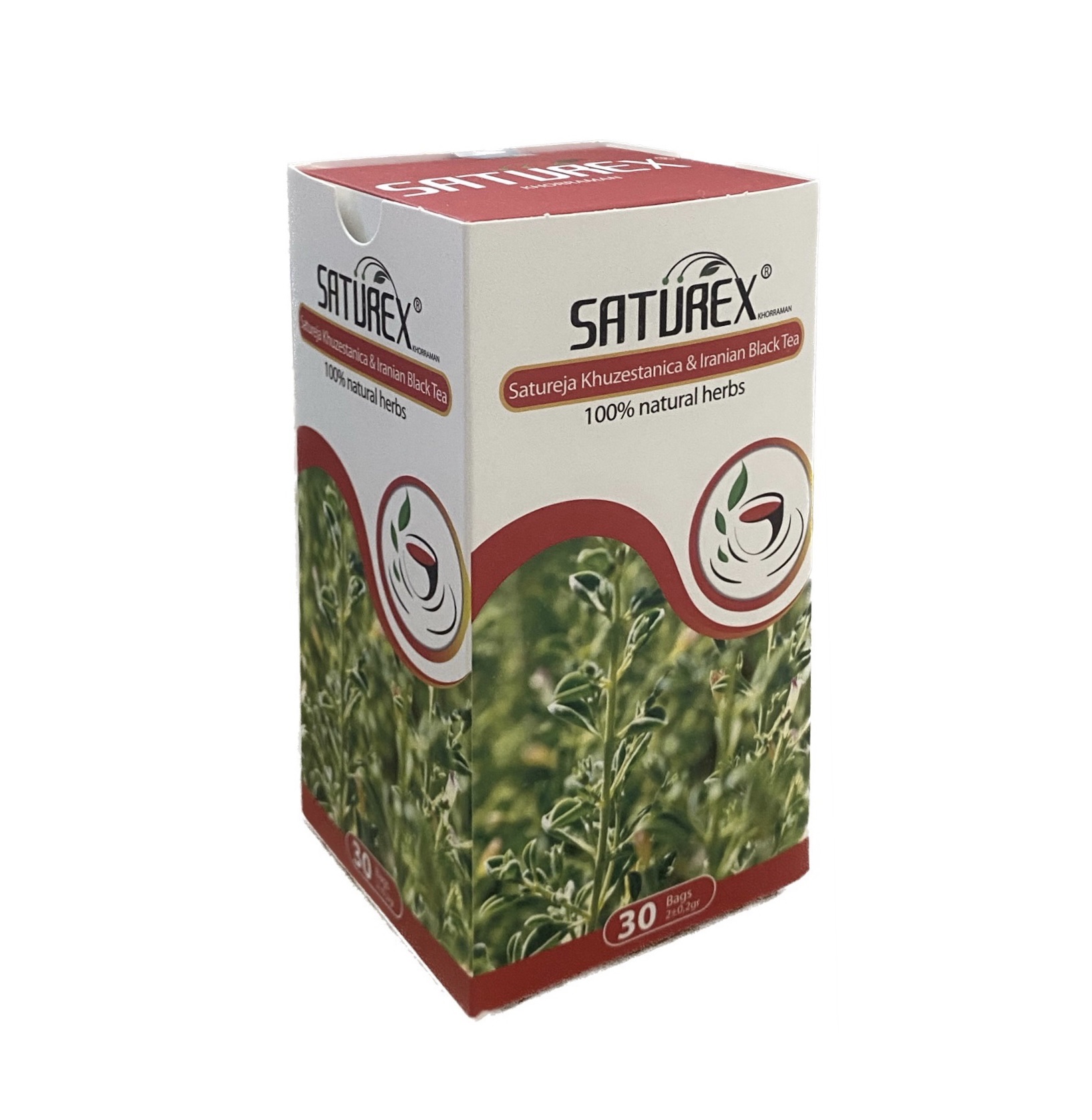 Trà thảo dược (dược trà) Saturex là một sản phẩm độc đáo với sự kết hợp hoàn hảo giữa lá và hoa của thảo dược Satureja Khuzestanica cùng với lá trà đen đặc trưng của Ba Tư. Saturex được sản xuất theo quy trình tiêu chuẩn hóa từ khâu trồng trọt, thu hái, sấy khô cho đến đóng gói, để đảm bảo hàm lượng các chất chống oxy hóa cao nhất.