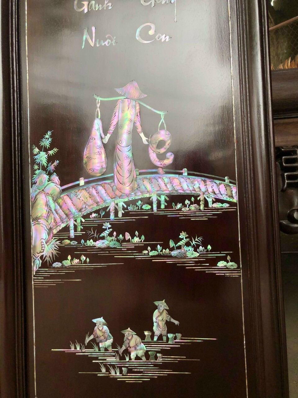 Tranh gốm sứ Bát Tràng cao cấp Hoạ tiết cổ đồ sinh phú quý Nền mành khung gỗ thông Kích thước 43*87cm