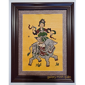 Tranh dân gian đông hồ -Bà Triệu cưỡi voi- TDH010 Chất liệu giấy dó phủ điệp vẽ tay bằng màu nước tự nhiên Khung tranh màu nâu vân gỗ composise nhẹ, chống mối mọt, bền đẹp. Mặt tranh lồng kính hoặc mika Kích thước phủ khung 38*48cm