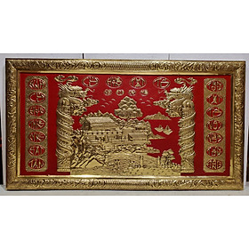 Tranh liễn thờ tổ tiên. CỬU -HUYỀN – THẤT- TỔ (thờ 9 đời nội ngoại) Sản phẩm được chế tác thủ công rất tinh xảo từ đồng vàng nguyên chất, liền tấm tranh và khung bằng đồng . Kích thước phủ khung 76*139cm