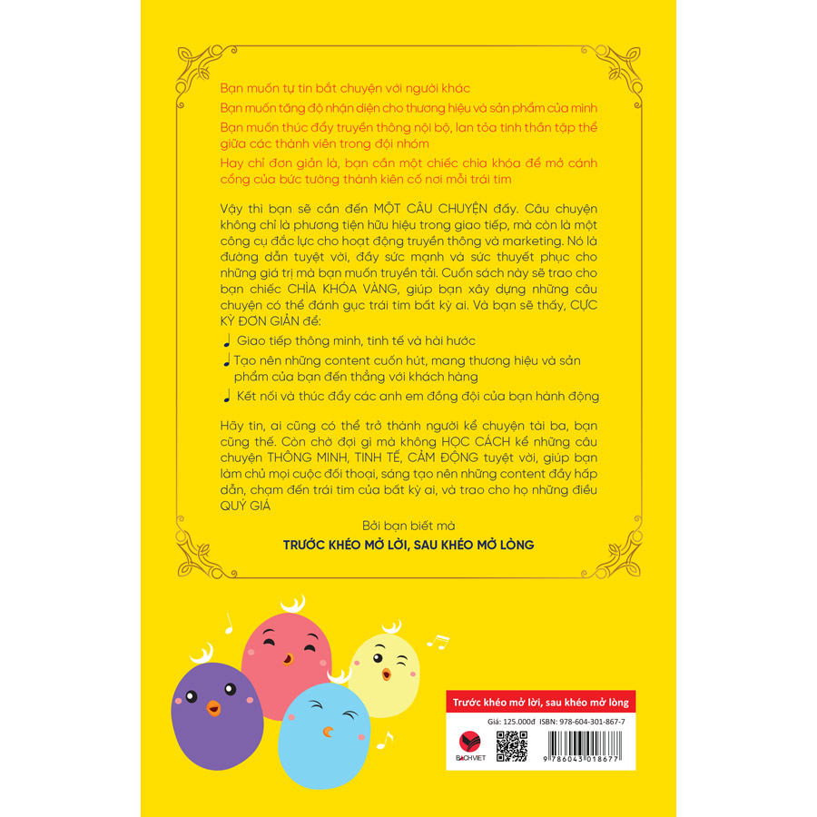 Vậy thì bạn sẽ cần đến MỘT CÂU CHUYỆN đấy. Câu chuyện không chỉ là phương tiện hữu hiệu trong giao tiếp, mà còn là một công cụ đắc lực cho hoạt động truyền thông và marketing. Nó là đường dẫn tuyệt vời, đầy sức mạnh và sức thuyết phục cho những giá trị mà bạn muốn truyền tải. Cuốn sách này sẽ trao cho bạn chiếc CHÌA KHÓA VÀNG, giúp bạn xây dựng những câu chuyện có thể đánh gục trái tim bất kỳ ai. Và bạn sẽ thấy, CỰC KÌ ĐƠN GIẢN để: