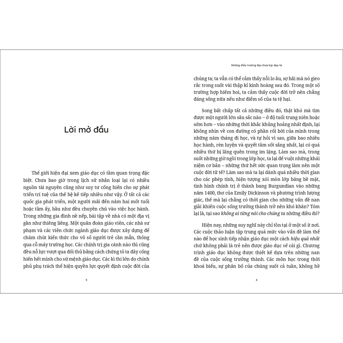 Xuyên suốt khoảng thời gian dài ngồi trên ghế trường học hay giảng đường đại học, chúng ta miệt mài chăm chút nền tảng kiến thức để học tập, nghiên cứu và phục vụ công việc trong tương lai. Kì lạ là bất chấp sự thật rằng chúng ta cần mẫn đến thế nào trong những năm tháng học, thì khi bước chân ra ngoài xã hội, chúng ta vẫn cảm thấy băn khoăn và rối bời và tự hỏi vì sao chúng ta không “được học” về những điều thực sự quan trọng chi phối và gây rắc rối cho cuộc sống.