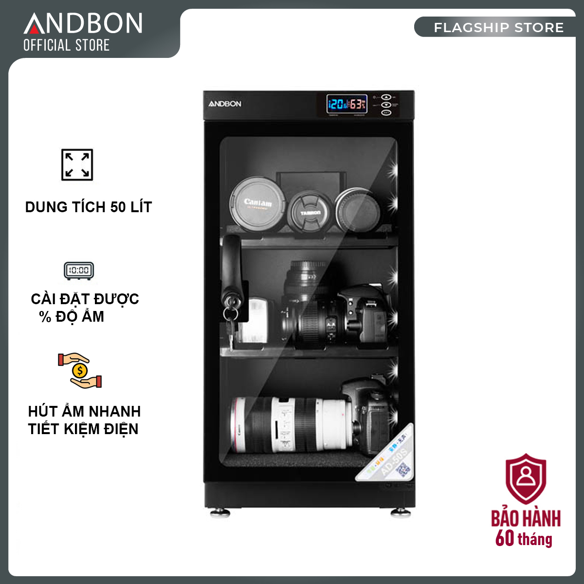 TỦ CHỐNG ẨM ANDBON AD-50S - HÀNG NHÂP KHẨU CHÍNH HÃNG BẢO HÀNH 5 NĂM TOÀN QUỐC THEO TEM ĐIỆN TỬ << DUNG TÍCH 50 LÍT - 3 NGĂN - MÀN HÌNH LCD >> [