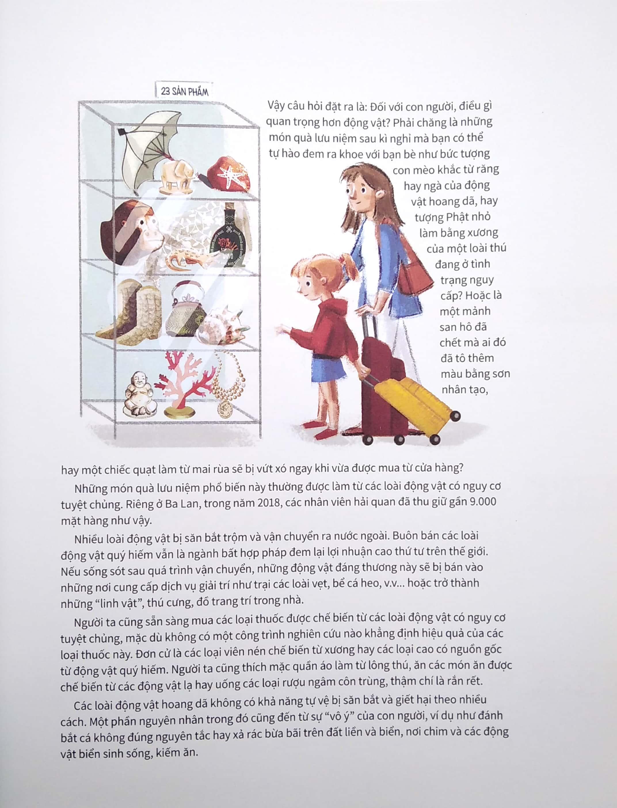 Với giọng kể dí dỏm, lôi cuốn của tác giả Małgorzata Kur và tranh minh họa hấp dẫn, đầy màu sắc đến từ họa sĩ Małgorzata Kwapińska, chúng ta sẽ lần lượt điểm lại những sản phẩm, dịch vụ con người vẫn đang sử dụng, thậm chí ưa chuộng, nhưng lại có tác động tiêu cực đến các loài động vật. 23 Sản Phẩm Đẩy Các Loài Sinh Vật Đến Bờ Vực Tuyệt Chủng – Từ Điển Động Vật Quý Hiếm sẽ góp phần nâng cao nhận thức của mọi người về môi trường sinh thái và khuyến khích mỗi cá nhân chịu trách nhiệm cho những lựa chọn của mình.