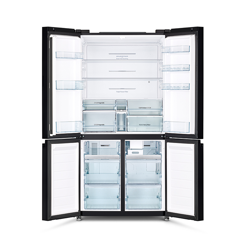 Thiết kế Multi Door lắp âm, trang bị hệ thống đèn cảm ứng thông minh. - Ngăn chuyển đổi linh hoạt giữa đông mềm -3°C và Pro Age -1°C. - Ngăn cấp đông sâu -30°C bảo quản độ ẩm và sự tươi ngon của thực phẩm. - Làm đá tự động chỉ 60 phút giúp bạn thưởng thức đồ uống nhanh, tiện lợi. - Khử mùi, diệt khuẩn hiệu quả với công nghệ PureAir. - Công nghệ Origin Inverter tiết kiệm điện, vận hành êm ái. Tổng quan - Kiểu tủ:Multi Door - 4 cánh - Dung tích sử dụng:533 lít - 4 - 5 người - Dung tích tổng:564 lít - Dung tích ngăn đá:199 lít - Dung tích ngăn lạnh:314.5 lít - Dung tích ngăn chuyển đổi:19.5 lít - Chất liệu cửa tủ lạnh:Mặt kính - Chất liệu khay ngăn lạnh:Kính chịu lực - Chất liệu ống dẫn gas, dàn lạnh:Ống dẫn gas bằng Sắt và Đồng - Lá tản nhiệt bằng Nhôm - Năm ra mắt:2024 - Sản xuất tại:Trung Quốc Mức tiêu thụ điện năng