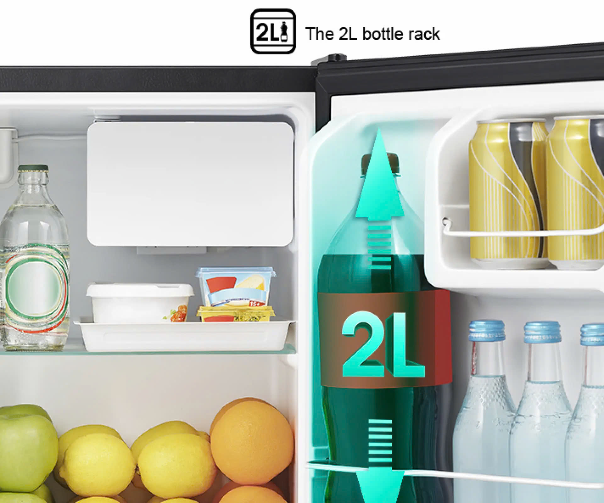 - Khay cửa tủ lạnh lớn với sức chứa chai nước 2 Lít