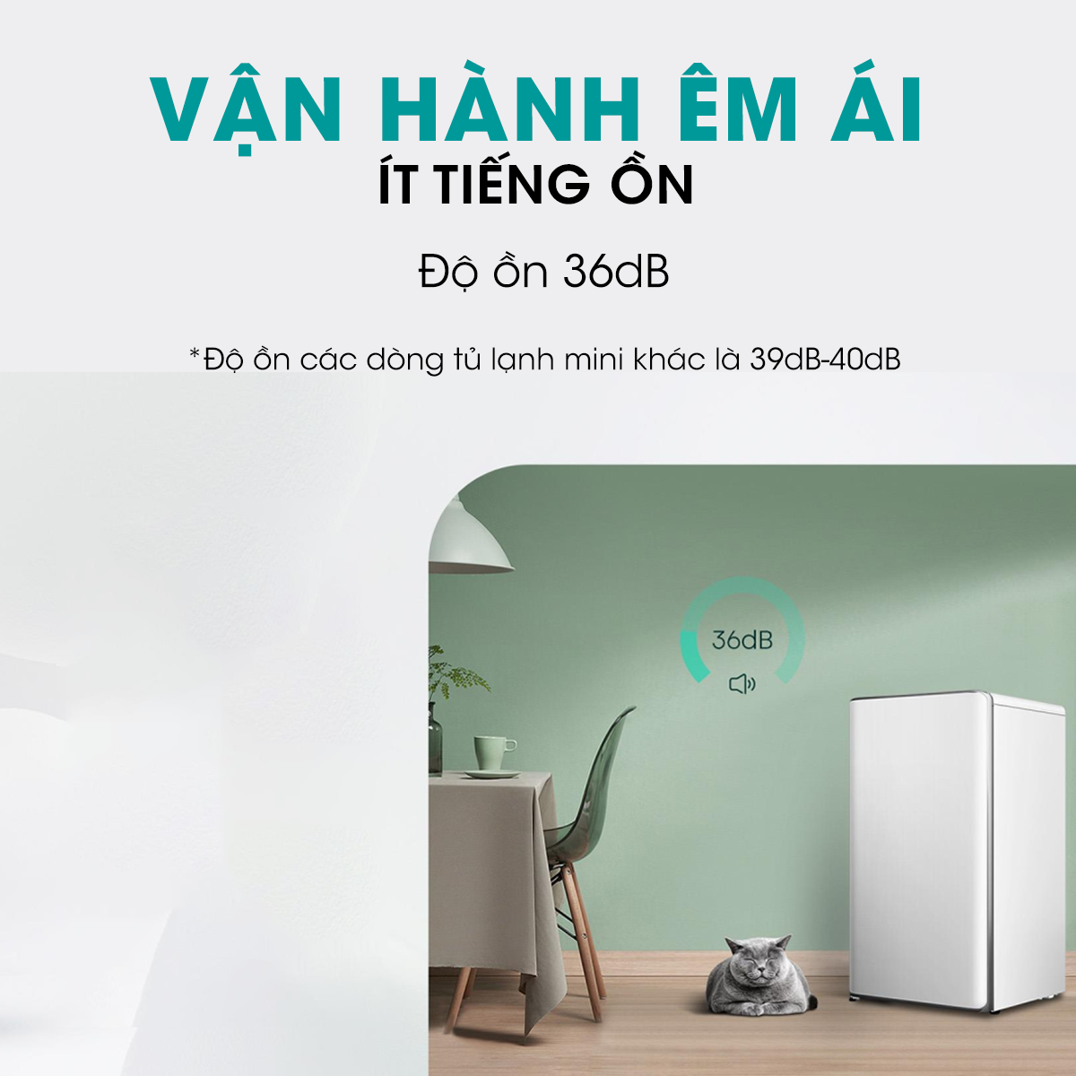 - Đặc điểm nổi bật - Thiết kế nhỏ gọn, màu sắc tinh tế dễ dàng đặt trong không gian phòng. - Thực phẩm được làm lạnh nhanh nhờ công nghệ làm lạnh trực tiếp. - Có khả năng làm đông thực phẩm với ngăn đá riêng biệt. - Nút vặn điều chỉnh nhiệt độ dễ dàng thao tác. - Đáp ứng nhu cầu lưu trữ thực phẩm nặng với khay kính chịu lực. - Tổng quan - Kiểu tủ:Mini - 1 cánh - Dung tích sử dụng:50 lít - 1 - 2 người - Dung tích tổng:53 lít - Dung tích ngăn đá:14 lít - Dung tích ngăn lạnh:36 lít - Chất liệu cửa tủ lạnh:Mặt thép - Chất liệu khay ngăn lạnh:Kính chịu lực - Chất liệu ống dẫn gas, dàn lạnh:Ống dẫn gas bằng Đồng - Lá tản nhiệt bằng Nhôm - Năm ra mắt:2024 - Sản xuất tại:Việt Nam Mức tiêu thụ điện năng