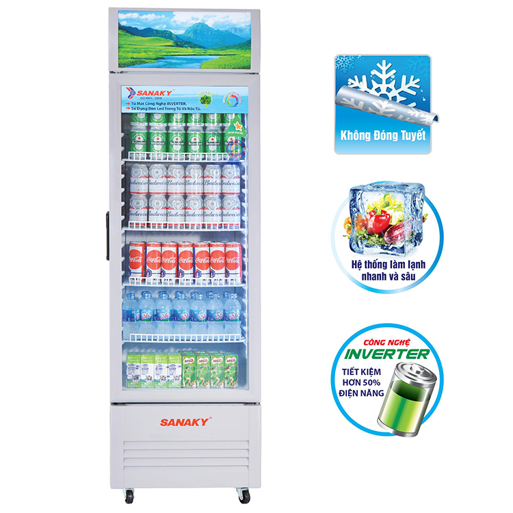 Tủ mát Inverter Sanaky VH-218K3L dung tích 210 lít Tủ mát Sanaky VH-218K3L là chiếc tủ mát 1 cánh kính mới ra mắt đầu nằm 2020 của hãng Sanaky. Sở hữu công nghệ inverter tiết kiệm
