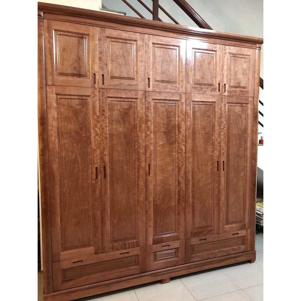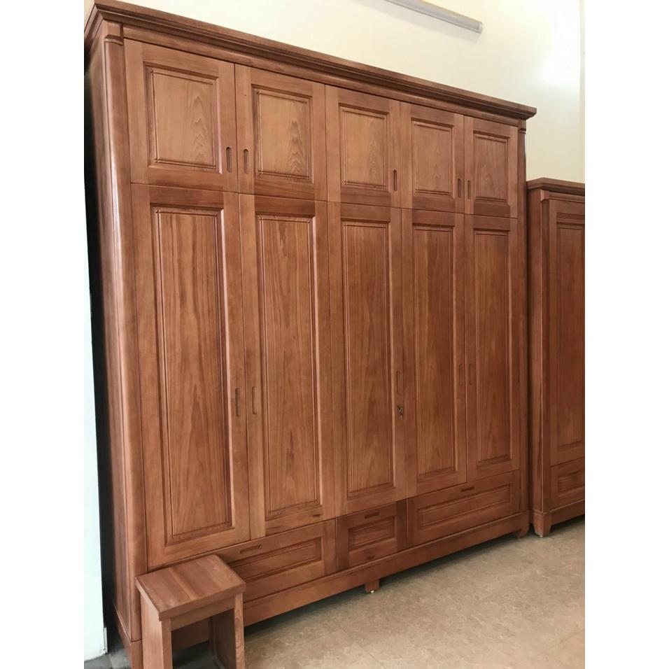 » Tủ Quần Áo 5 cánh gỗ Xoan Đào được sản xuất từ chất liệu gỗ Xoan Đào tự nhiên đã qua xử lý tẩm sấy công nghiệp chống mối mọt, cong vênh, đem lại độ bền cực cao (tấm hậu ván ép 9mm đã qua xử lý công nghiệp).