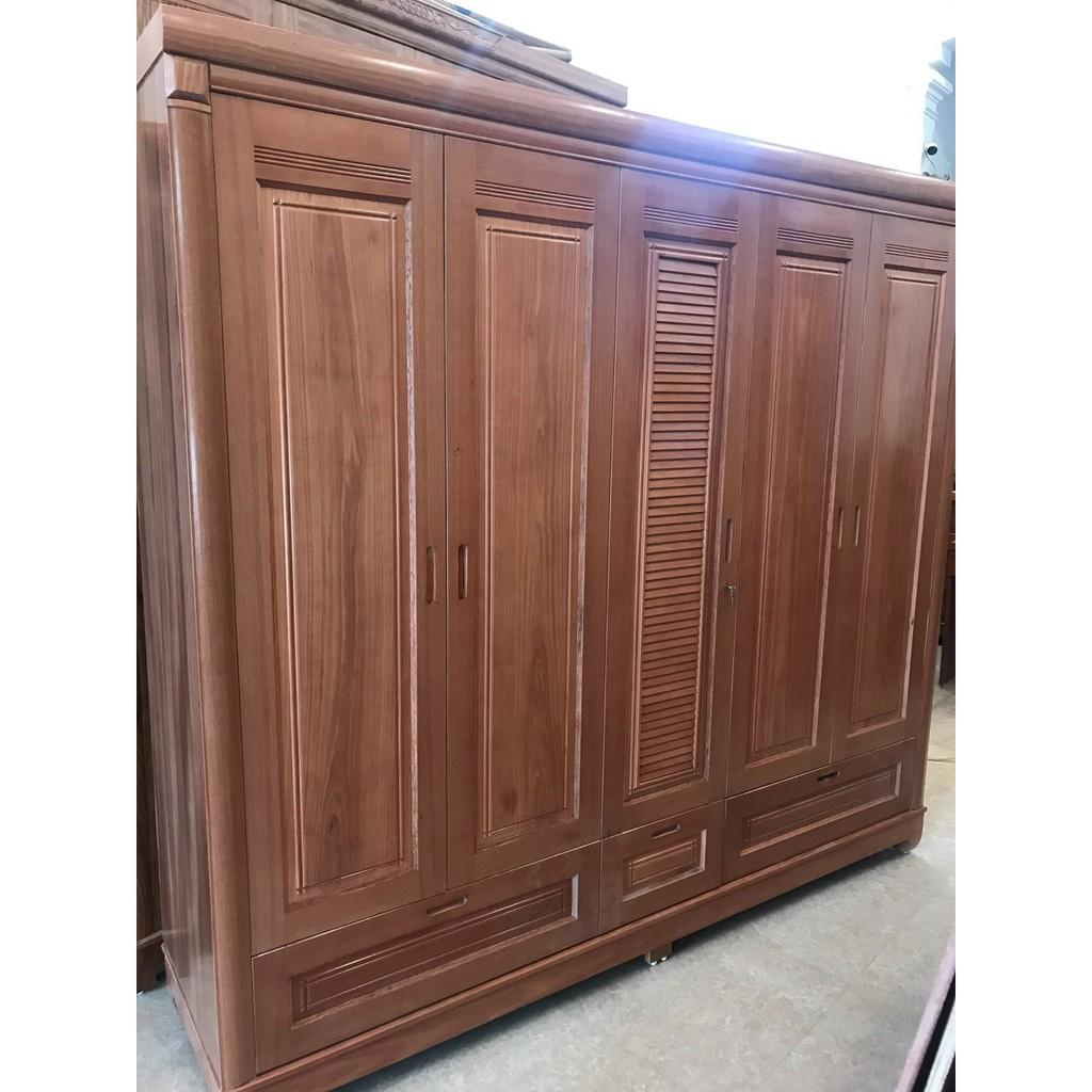 » Tủ Quần Áo 5 cánh gỗ Xoan Đào được sản xuất từ chất liệu gỗ Xoan Đào tự nhiên đã qua xử lý tẩm sấy công nghiệp chống mối mọt, cong vênh, đem lại độ bền cực cao (tấm hậu ván ép 9mm đã qua xử lý công nghiệp).