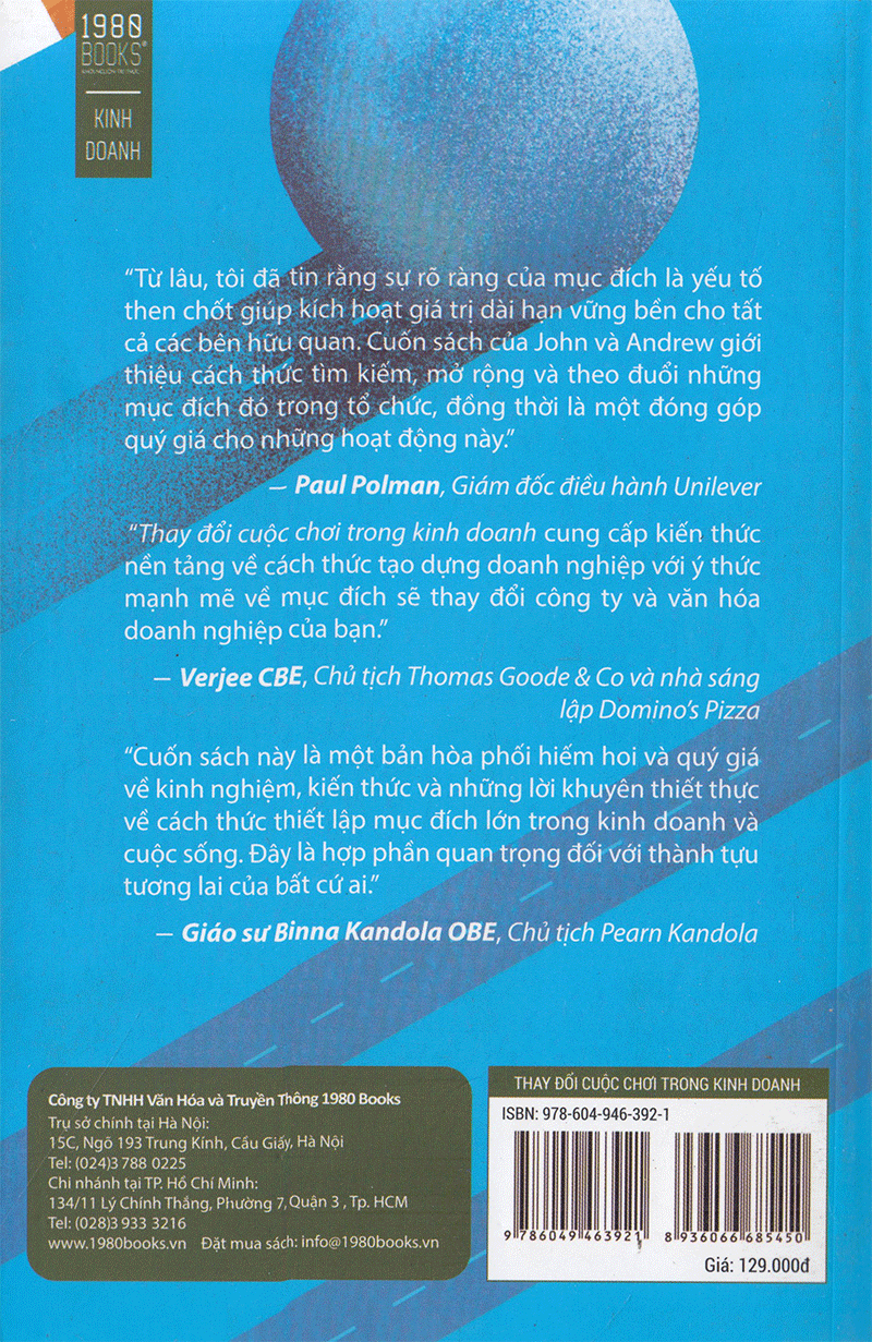 Kể từ sau cuộc khủng hoảng tài chính toàn cầu năm 2008, các doanh nghiệp đã phải thay đổi toàn diện để trụ vững trên thị trường. Những thế hệ lãnh đạo và người lao động hiện thời muốn biết những thông tin chi tiết về đạo đức và xã hội của công ty và tổ chức, trước khi quyết định đầu tư thời gian, năng lượng và trí tuệ của họ. Chưa bao giờ mà yêu cầu về mục đích thực sự của doanh nghiệp, dựa trên sứ mệnh và giá trị, lại quan trọng như hiện nay. Các công ty chứng minh được những phẩm chất này sẽ gắn kết chặt chẽ hơn với khách hàng, tăng tỷ lệ giữ chân nhân tài và nâng cao lợi nhuận. Thấu hiểu sâu sắc sự chuyển mình đang diễn ra, hai chuyên gia John O'Brien và Andrew Cave đã cung cấp bộ kỹ năng nhằm kiến tạo mục đích cho doanh nghiệp trong cuốn sách "Thay đổi cuộc chơi trong kinh doanh".