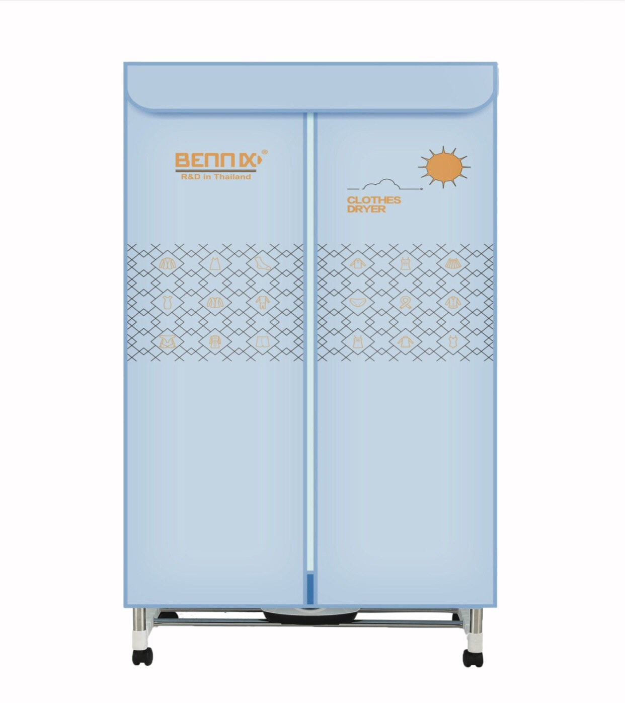 Tủ Sấy Quần Áo Bennix BN-115BIG -1800W Vài năm gần đây tủ sấy quần áo Thái Lan thương hiệu Bennix được nhiều gia đình lựa chọn. Sản phẩm có khung chắc chắn, vải bạt tốt, động cơ sấy an toàn, vải bạt bên ngoài không bị vỡ giòn hay rách mủn sau một thời gian sử dụng như loại rẻ tiền đang bán trên thị trường. Mặc dù giá cao hơn một chút so với máy sấy quần áo giá rẻ nhưng lợi ích mang lại lâu dài và yên tâm sử dụng. Khung Inox to Điểm khác biệt lớn nhất của tủ sấy quần áo Thái Lan Bennix BN-115BIG mẫu mới là khung inox cao hơn. Chiều cao sau lắp đặt khoảng 172cm, trong khi các loại đang bán trên thị trường khoảng 150cm. Chiều rộng của tủ 90cm (loại cũ chỉ 70cm). Nhờ đó bạn treo được nhiều đồ hơn. Với các mẫu máy sấy quần áo hiện nay thường sấy khoảng 15kg nhưng Bennix BN-115BIG có thể sấy tối đa 25kg. Các thanh inox cũng to hơn, khi lắp đặt bạn sẽ có cảm giác chắc chắn hơn rất nhiều so với các loại. Khả năng chịu lực tốt. Chất liệu inox không gỉ. Ngoài các thanh chính còn có thêm các thanh phụ nhỏ giúp tăng khả năng tận dụng tối đa bên trong buồng sấy. Khả năng cơ động cao với bánh xe di chuyển. Thiết kế thông minh dễ dàng tháo lắp khi có nhu cầu hoặc không muốn sử dụng khi hết mua. Khung tủ chắc chắn bạn cũng có thể sử dụng thay cho tủ vải đựng quần áo. Vải cao cấp Vải bạt phủ bên ngoài thủ sấy cũng có sự khác biệt đáng kể. Thay vì sử dụng chất liệu pha nhiều, tủ sấy quần áo Bennix BN-115BIG sử dụng loại vải cao cấp. Nhờ đó độ bền tăng lên rấ nhiều. Sản phẩm không bị mục, rách, thoái hóa sau một thời gian sử dụng. Công suất lớn Động cơ của tủ sấy quần áo Bennix BN-115BIG cũng có sự khác biệt rất lớn. Công suất lớn, chất liệu nhự cao cấp và bộ phát nhiệt ổn định giúp duy trì nhiệt độ bên trong buồng sấy tối ưu. Máy sẽ tự động ngắt sau khi hết thời gian để đảm bảo an toàn. Sấy khô nhanh, bảo vệ quần áo Công suất của động cơ tối đa 1800w, nhờ đó máy có thể sấy lượng lớn quần áo nhanh chóng. Thời gian sấy có thể lựa chọn tối đa 3 giờ. Tùy theo lượng quần áo, chấ liệu vải dầy hay mọng bạn có thể chọn lựa thời gian phù hợp. Hệ thống sấy khô kết hợp diệt sạch vi khuẩn và chống nhăn giúp bảo vệ quần áo. Hướng dẫn sử dụng tủ sấy Bennix BN-115BIG Trước tiên bạn cần lắp ráp tủ sấy trước khi sử dụng. Tham khảo qua sách hướng dẫn lắp đặt