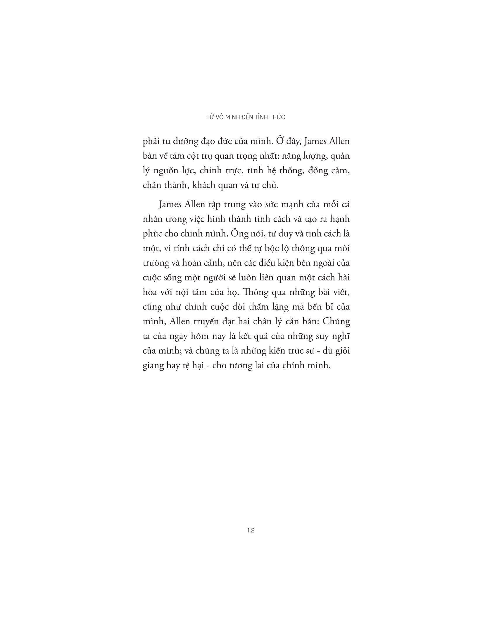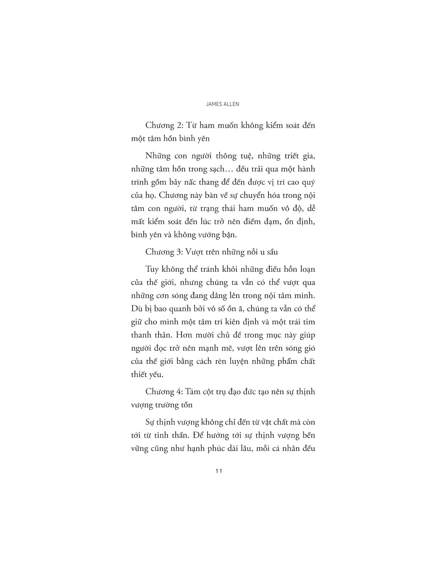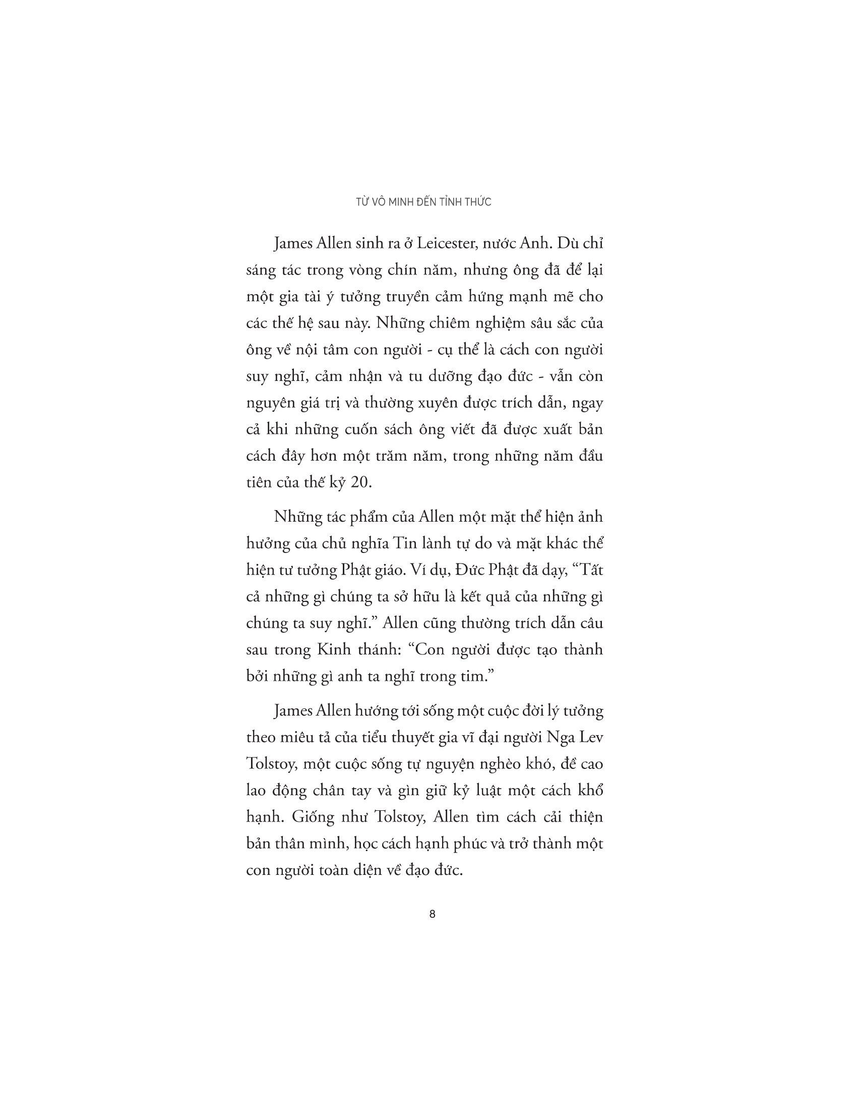 James Allen (1864 – 1912) là một người bí ẩn trong giới sách vở, nhưng những bài viết đầy cảm hứng của ông đã tác động đến hàng triệu người. Những chiêm nghiệm sâu sắc của ông về nội tâm con người - cụ thể là cách con người suy nghĩ, cảm nhận và tu dưỡng đạo đức - vẫn còn nguyên giá trị và thường xuyên được trích dẫn lại, ngay cả khi những cuốn sách ông viết đã được xuất bản cách đây hơn một trăm năm, trong những năm đầu tiên của thế kỷ 20.