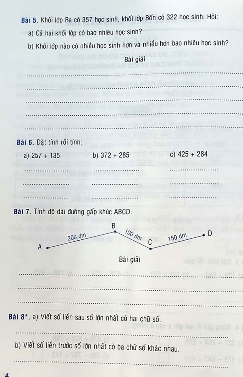 Quyển sách TUYỂN CHỌN 400 BÀI TẬP TOÁN 4 là tài liệu tham khảo rất cần thiết cho học sinh, giúp các em củng cố kiến thức, rèn luyện kỹ năng giải toán để từ