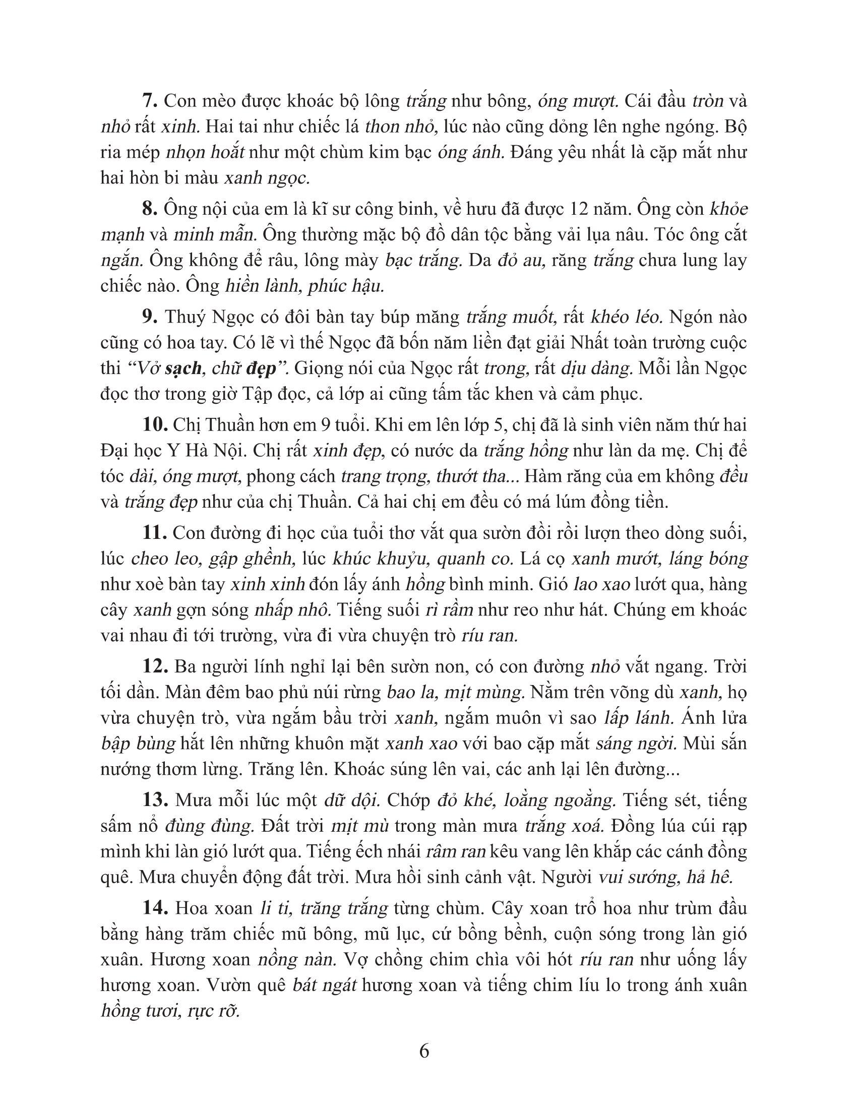 Ngoài những yêu cầu như: chữ viết phải nắm nót, cẩn thận, đẹp, viết đúng chính tả; câu văn phải đúng ngữ pháp, từ ngữ dùng chính xác,ì bài văn miêu tả còn cần có tính hình tượng và tính biểu cảm. Nghĩa là câu văn, đoạn văn cần có hình ảnh đẹp, thể hiện cảm xúc, ý nghĩa của người viết đối với sự vật, con người, cảnh vật được miêu tả. Các bài văn được tuyển chọn ở đây đã đáp ứng những yêu cầu cơ bản được nêu lên.