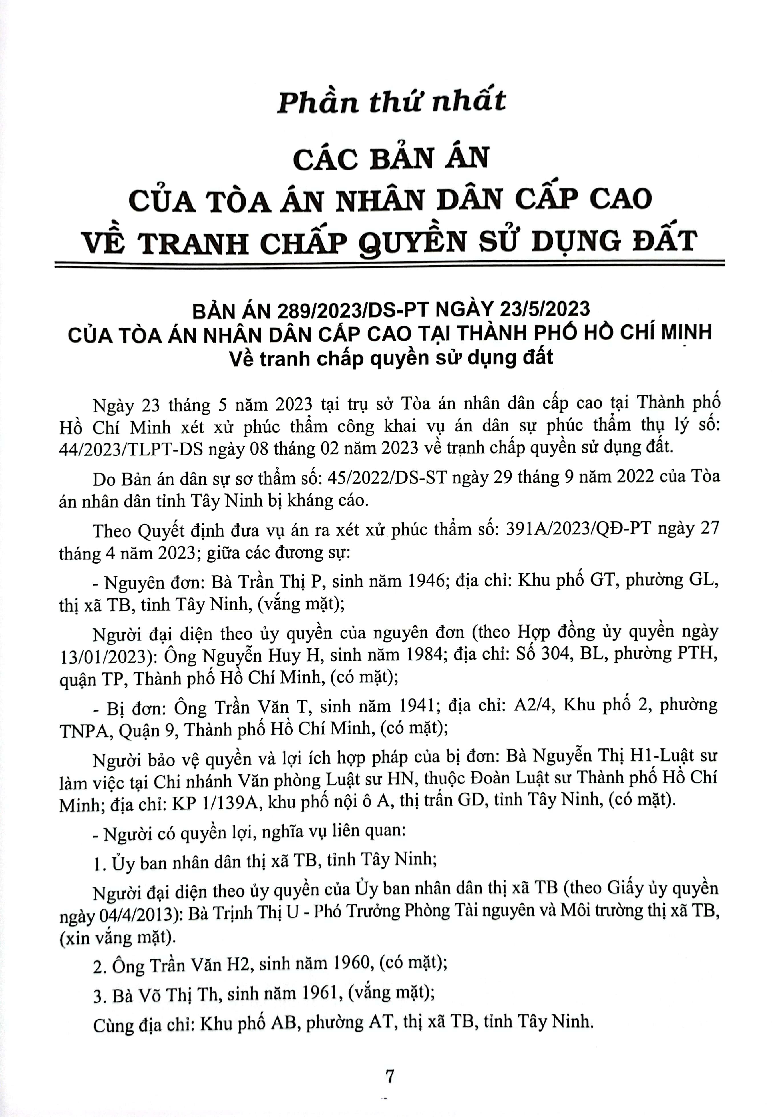 Phần thứ nhất. Các Bản án của Tòa án nhân dân cấp cao về tranh chấp quyền sử dụng đất