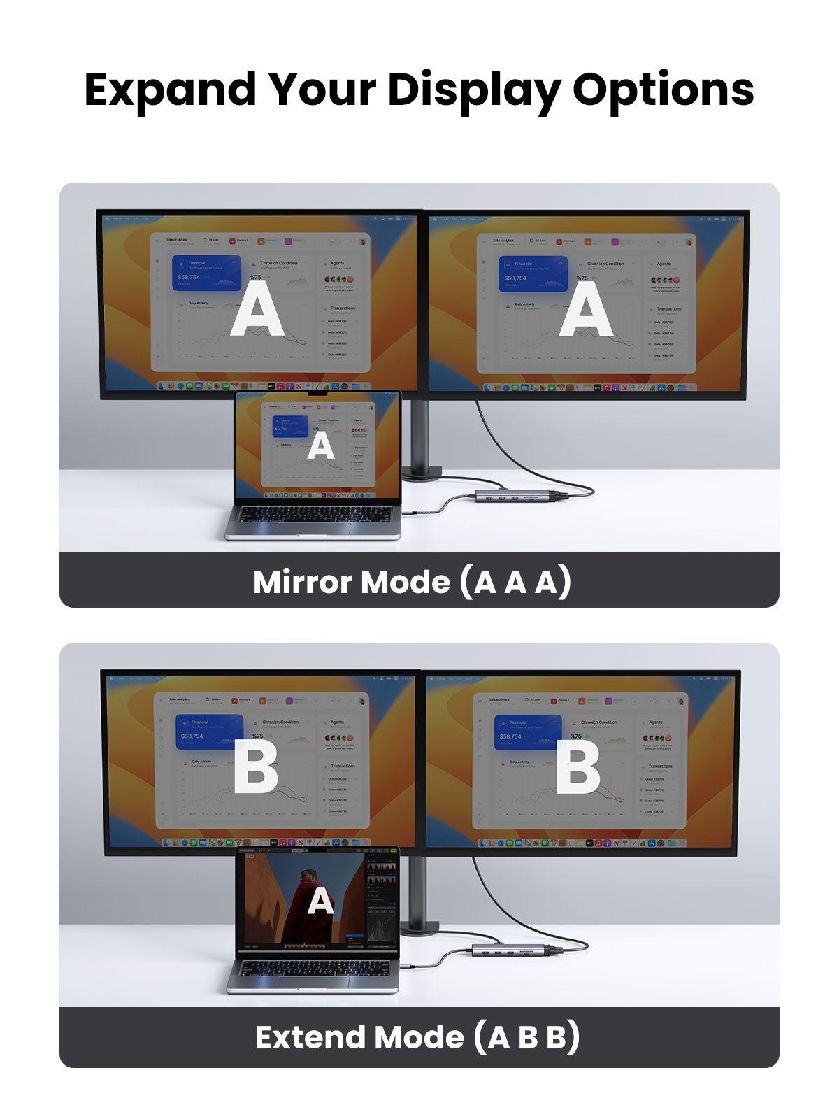 Ugreen 90325 USB type C to 1xusb A 10G + 1xusb-C 10G + 2xusb-A 5G + 2xHDMI 4K60Hz + DP + RJ45 Gigabit + SD/TF + 3.5mm Audio + PD Multifunction Docking Station MST for