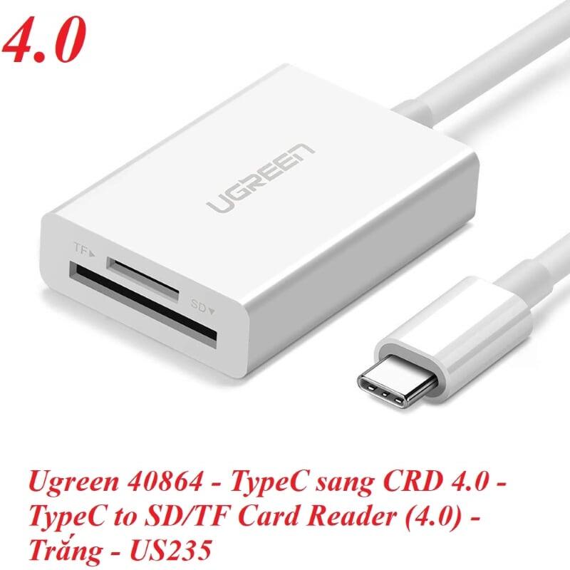 Ugreen 40864 type c to sd tf card reader 4.0 trắng us235
