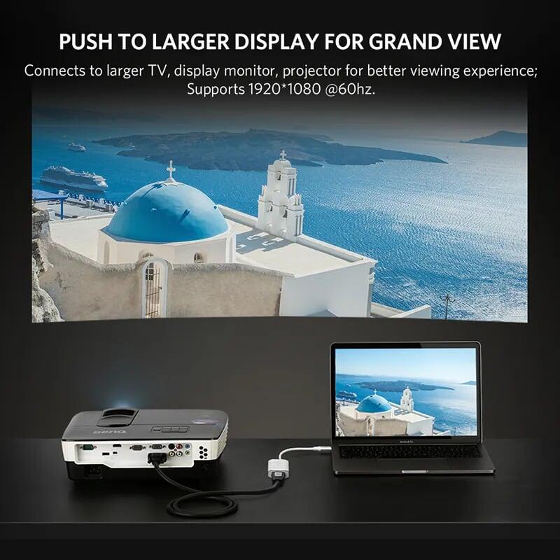 Ugreen 50738 15CM usb c to hdmi vga converter with pd xám cm162 1. Features: Connect a computer, laptop with USB-C port to the monitor, projector with VGA port, HDMI. 2. Cable length: 15cm 3.