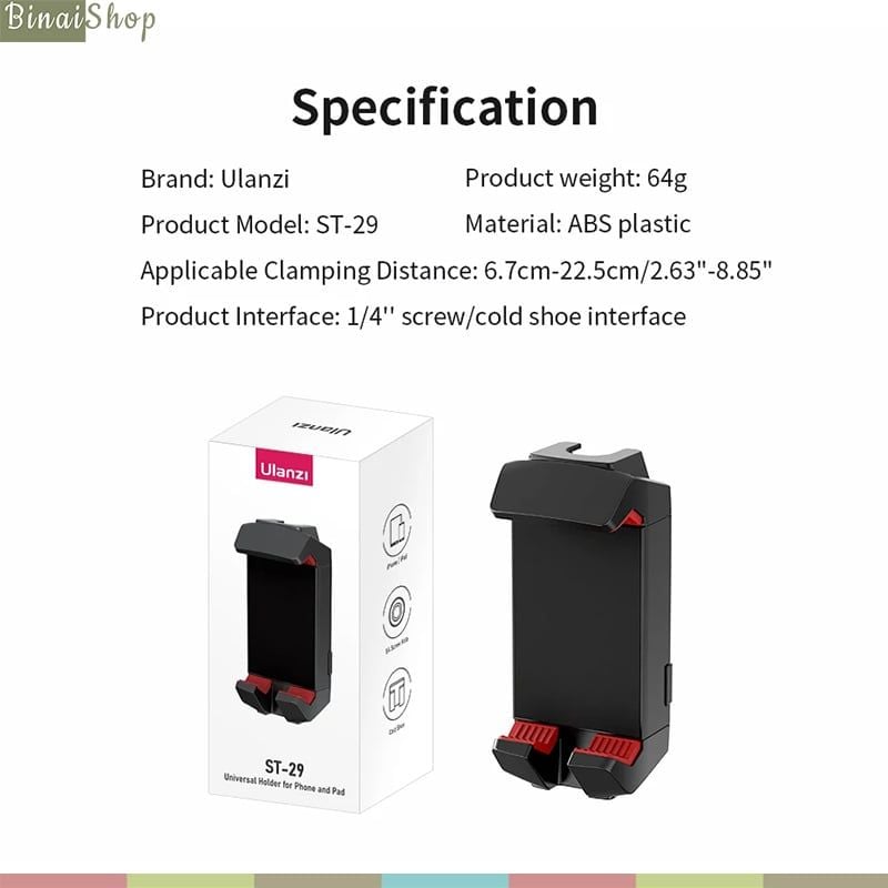 ✨Ulanzi ST-29 – Kẹp Điện Thoại, Máy Tính Bảng Xoay Linh Hoạt, Tích Hợp Cold Shoe Và 2 Ngàm Phụ Kiện (Hàng Chính Hãng)