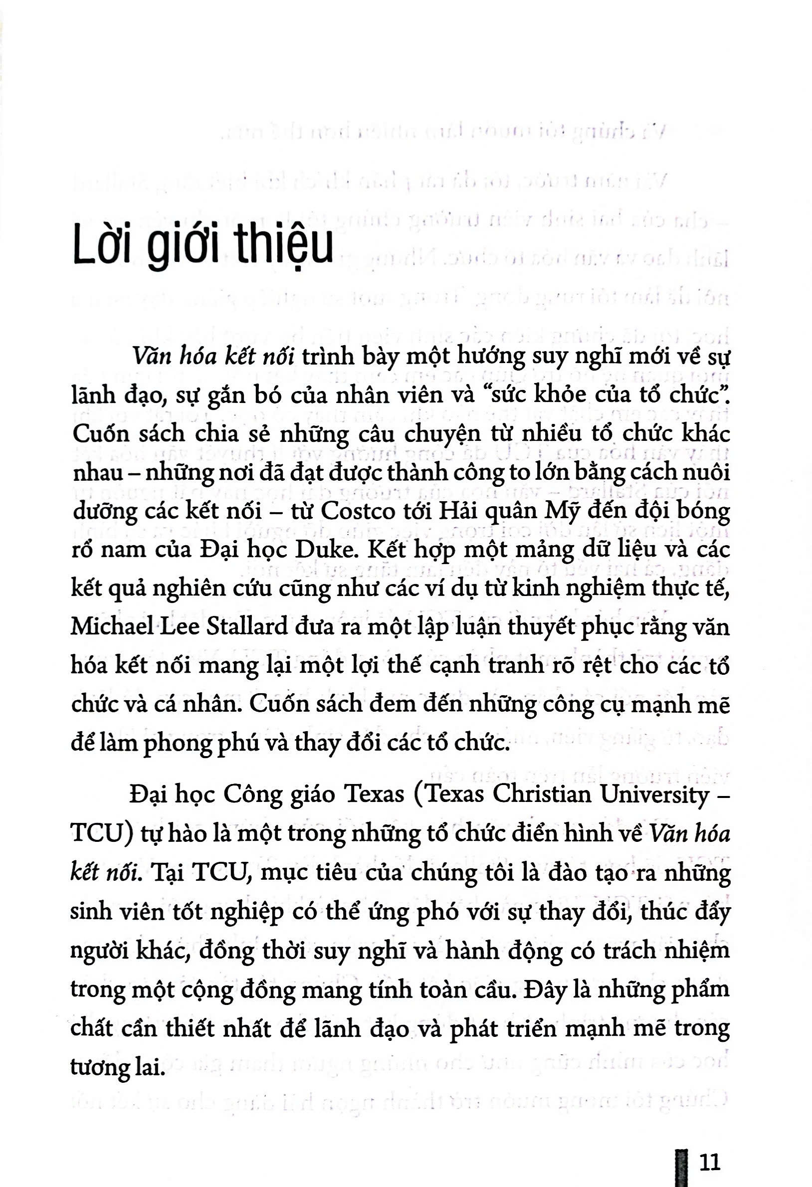 Nhiều người trên toàn thế giới đã phải vật lộn với căng thẳng và cô đơn cao độ trước cả khi dịch bệnh ập đến. Hơn bao giờ hết, đây là thời điểm thiết yếu trong lịch sử để nuôi dưỡng các văn hóa kết nối, tăng sự kết nối ở nhà, nơi làm việc và công đồng của bạn. Hướng suy nghĩ mới về sự lãnh đạo, sự gắn bó của nhân viên và "sức khỏe của tổ chức" Để tạo ra một tổ chức phát triển không ngừng với môi trường làm việc năng động mà tại đó các nhân viên cảm thấy mình được trân trọng và có thể chứng kiến hiệu quả cao lẫn sự đổi mới ở bất kì nơi đâu, chúng ta cần một lãnh đạo kiểu mới có thể xây dựng văn hóa kết nối trong tổ chức. Con người, gồm cả khách hàng và nhân viên - là thành phần quan trọng nhất của bất kì doanh nghiệp nào, các lãnh đạo ngày nay quá chú trọng vào hoạt động tài chính, nhưng sự kết nối và làm việc cùng nhau của mọi người mới là chìa khóa dẫn đến thành công. Chúng ta phải làm tốt hơn với tư cách là lãnh đạo và với tư cách là giáo viên phát triển khả năng lãnh đạo để có thể tạo ra và duy trì văn hóa kết nối một cách có chủ đích. Ngay cả khi bạn nghĩ rằng bạn đã có tất cả mọi thứ (khảo sát, đào tại, giải thưởng, ghi nhận và sự tôn vinh) Lãnh đạo chính là xây dựng các mối quan hệ. Cuốn sách tiết lộ nghệ thuật và khoa học của việc tạo ra một văn hóa có thể xây dựng các mối quan hệ và thúc đẩy hiệu quả làm việc Cuốn sách "Văn hóa kết nối" này chính là cơ hội hiếm có để bạn trở thành một nhà lãnh đạo như vậy. Được xuất bản khi bóng tối của Đại dịch COVID 19 bủa vây, cuốn sách gửi gắm thông điệp về hi vọng tăng trưởng sau chấn thương của tác giả, đồng thời cung cấp những ki thuyết được nghiên cứu kĩ lương và được cập nhập về quan hệ giữa căng thẳng và cô đơn. Ngoài ra, cuốn sách còn trình vày rất nhiều về những nhà lãnh đạo tài ba giao tiếp trong bối cảnh khủng hoảng. "Văn hóa kết nối" thực sự nắm bắt được ló do và cách thức để huy động một tổ chức cùng nhau làm việc nhằm hướng tới một tầm nhìn hấp dẫn. Mọi nhà quản lý đều nên đọc cuốn sách này - nó sẽ giúp nuôi dưỡng những môi trường làm việc lành mạnh hơn và khiến công việc của mọi người dễ dàng hơn rất nhiều.