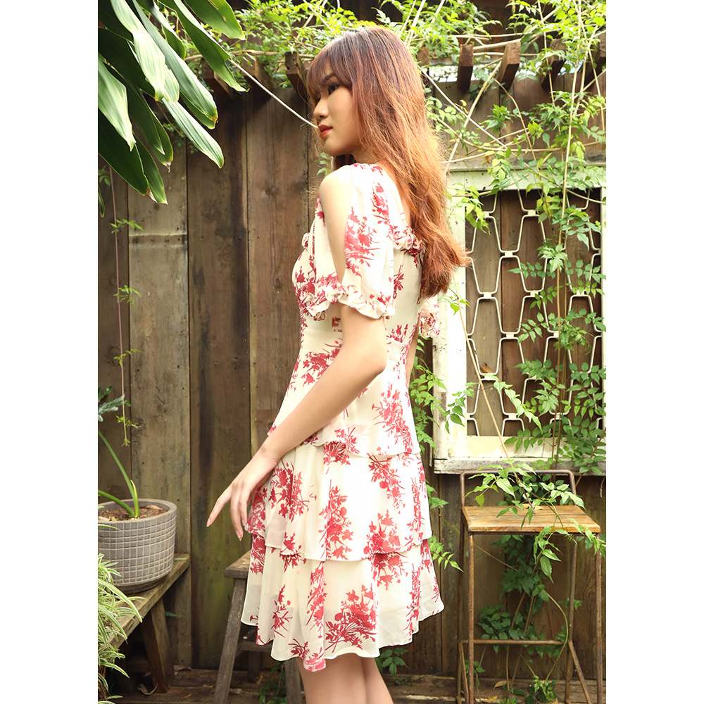 Váy hoa cao cấp Wannabe DC001 chất liệu voan tơ mềm mịn nhẹ nhàng tạo cảm giác thoải mái dễ chịu cho các nàng khi diện đi làm hay đi cà phê cùng bạn bè.Thiết kế kiểu dáng cổ vuông quý phái sang trọng, tay xòe hiện đại cùng với chân váy nhún 3 tầng nữ tính