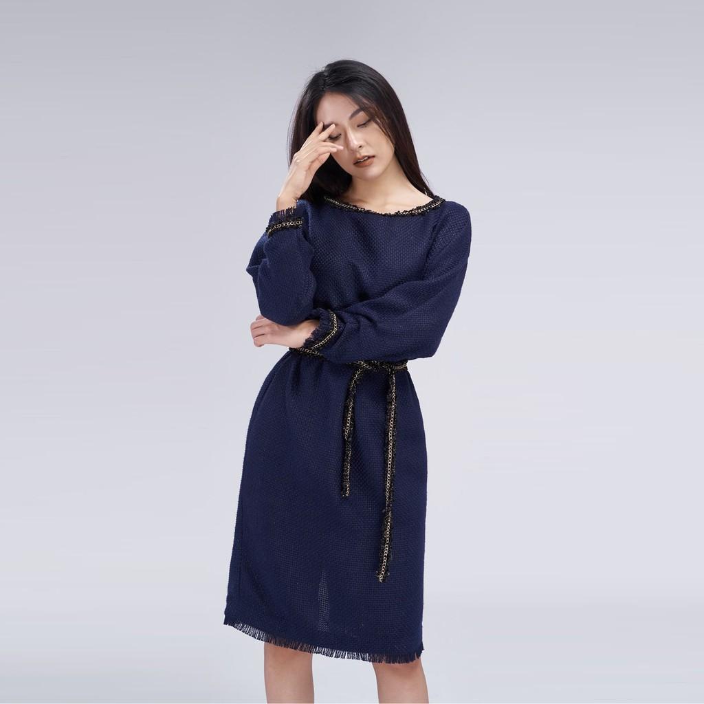 Váy liền kèm belt - Chất liệu: Dạ Tweed - Màu: xanh Navy - Size: S M L + Số đo cho size S: Ngực 80-85(cm), 48-51(kg) + Số đo cho size M: Ngực 85-88(cm),