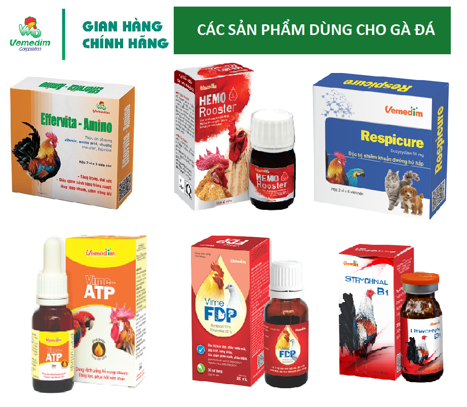 Vemedim Trimesul uống dùng cho gà đá bị CRD, tụ huyết trùng, thương hàn, , lọ 50 viên THÀNH PHẦN: Trong 300 mg sản phẩm có chứa: S mg T mg Tá dược vừa đủ mg LIỀU DÙNG: Cho uống trực tiếp, ngày 2 lần, liên tục từ 3- 5 ngày theo liều: