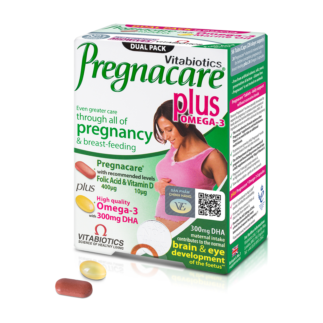 TPCN tăng cường sức khỏe cho phụ nữ mang thai Vitabiotics Pregnacare Plus Omega 3 giúp bổ sung các vitamin và khoáng chất cho phụ nữ mang thai và cho con bú, hỗ trợ tăng