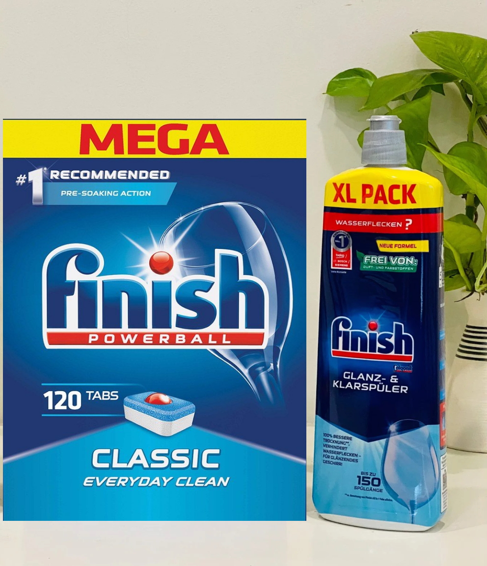✨Viên rửa bát Finish 120 viên + Nước làm bóng Finish 800ml dùng cho Máy rửa bát