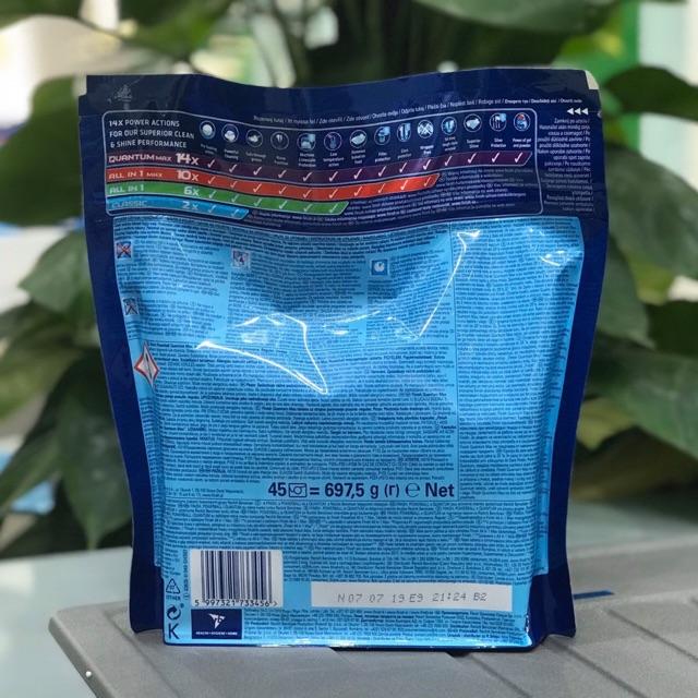 Viên rửa bát Finish Quantum All in one 100 viên- ĐỨC (Dùng cho máy rửa bát) hoặc combo 2 túi 44 viên thành 88 viên Viên rửa chén bát Quantum All in one với 12