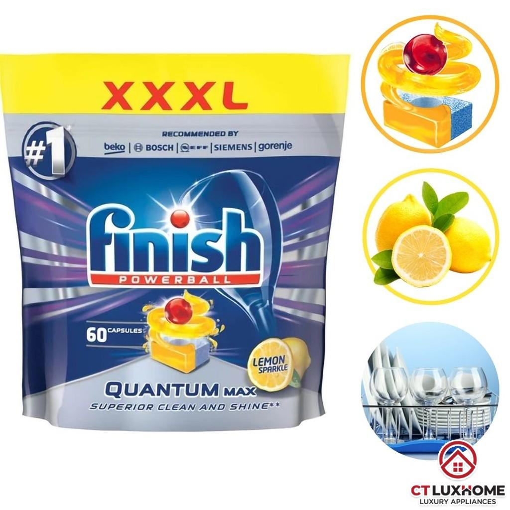 Viên rửa bát Finish Quantum Max 60 viên Lưu ý: - Mẫu mã bao bì có thể thay đổi theo từng lô hàng nhập về nhưng chất lượng không đổi. - Để nơi khô ráo,