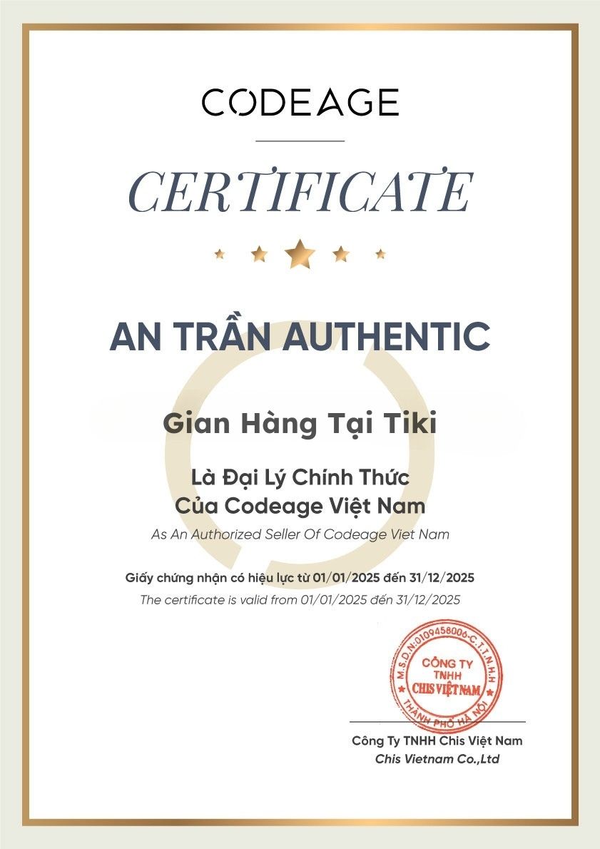 Giới thiệu về thương hiệu Codeage Codeage là thương hiệu nổi tiếng đến từ Mỹ, chuyên cung cấp các sản phẩm chăm sóc sức khỏe và bổ sung dinh dưỡng chất lượng cao. Thương hiệu luôn chú trọng đến việc nghiên cứu và phát triển các sản phẩm dinh dưỡng dựa trên khoa học, kết hợp với nguyên liệu tự nhiên. Các sản phẩm của Codeage được sản xuất tại các cơ sở đạt chuẩn cGMP, đảm bảo chất lượng và sự an tâm cho người tiêu dùng. An Trần Authentic được chứng nhận đại lý chính thức tại Việt Nam Thông số sản phẩm