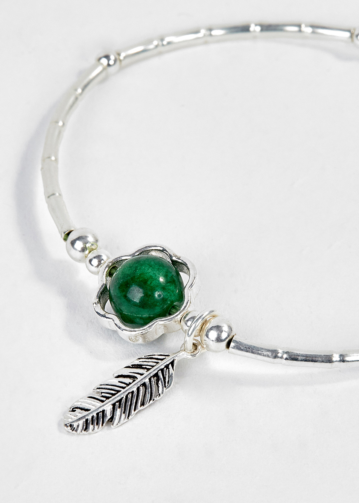 Vòng Bạc Hạt Đá Thiên Nhiên Phối Charm Lá