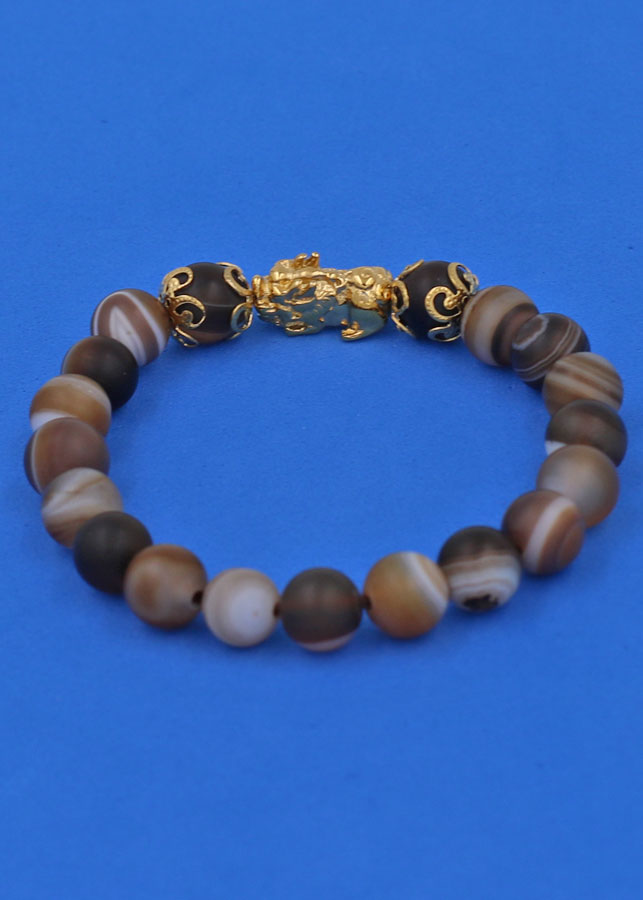 ✨Vòng chuỗi đeo tay Mã Não Nâu Sọc Mờ 8 ly - cẩn Tỳ Hưu Phong Thủy inox vàng VMNNSMTHHKV8 - hợp mệnh Kim, mệnh Thổ