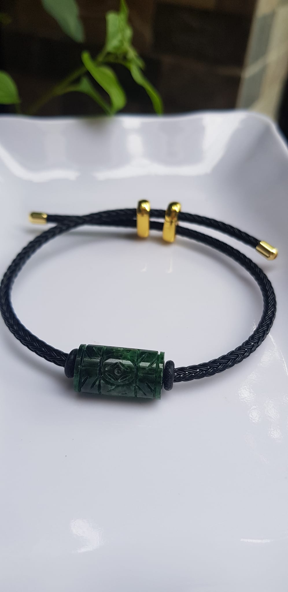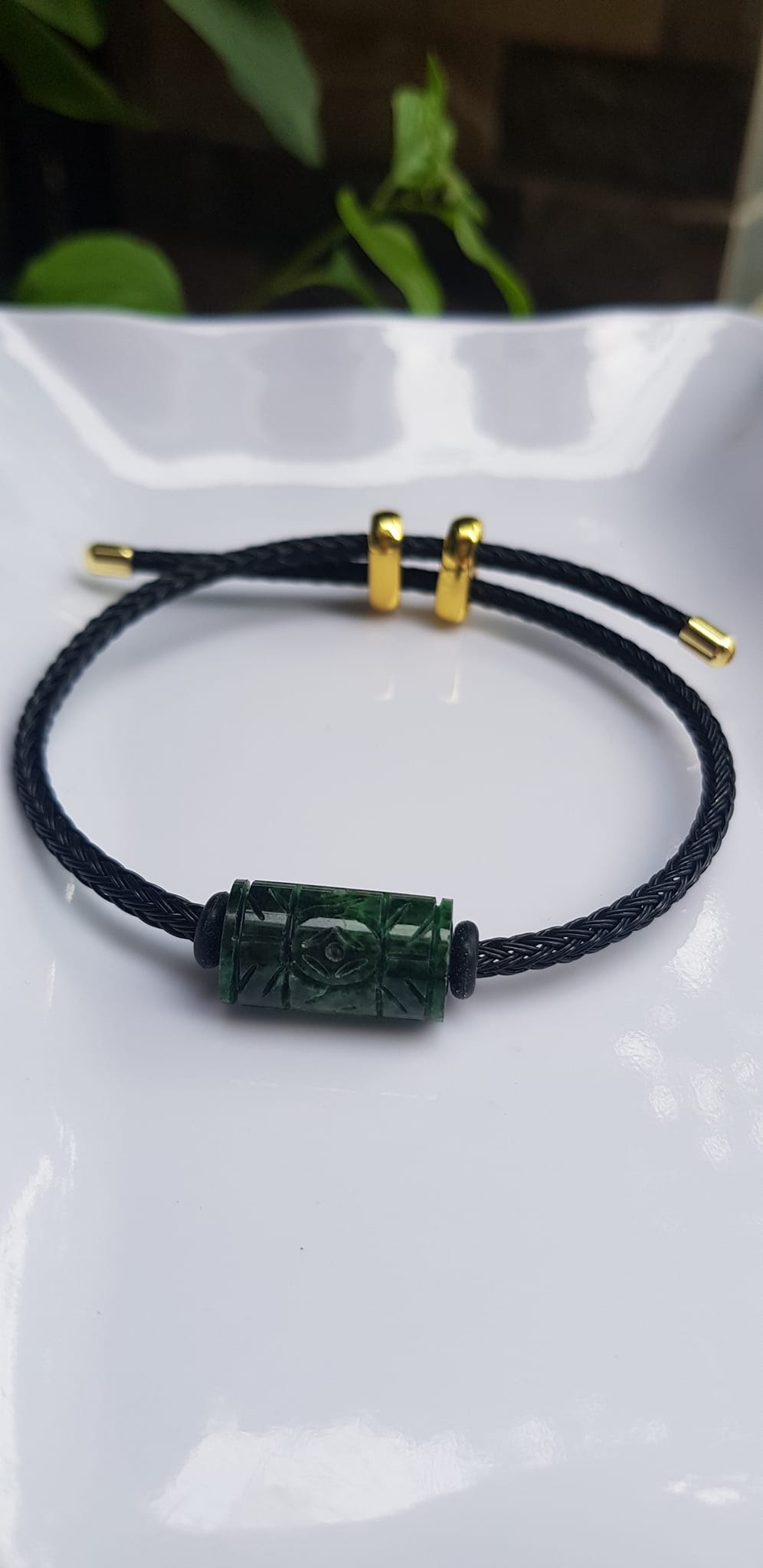 ✨Vòng Đeo tay Mới charm Lu Thống Đồng Tiền Xanh Đậm đẹp Hạt Lu Đồng Tiền Đá cẩm thạch tự nhiên dây đen rút chỉnh theo tay tùy ý Hợp nữ mệnh Thủy mệnh Mộc hợp ạ