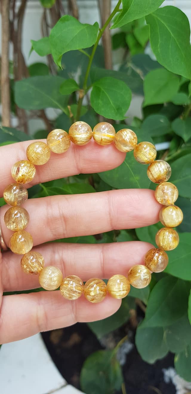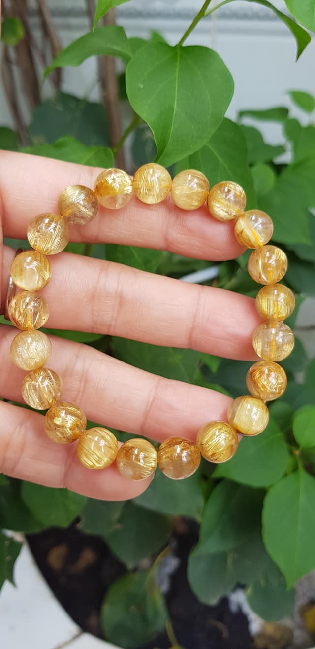 ✨Vòng đeo tay phong thủy may mắn nữ đá thạch anh tóc vàng đồng trục tự nhiên Size vòng hạt 9mm ánh sáng rất đẹp Vòng chuẩn hợp nữ mệnh kim, mệnh thổ, mệnh Thủy ạ