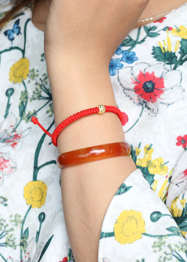 ✨Vòng Kết Dây Đỏ Charm Bi 8Ly Bạc Bọc Vàng 24K Ngọc Quý Gemstones GA158