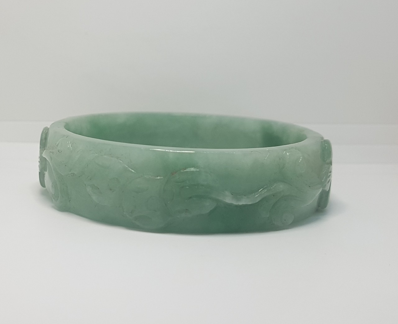 Chất liệu: Ngọc cẩm thạch tự nhiên. Màu sắc: Xanh ngọc tự nhiên (không qua xử lý) Kích thước: bản vuông, đường kính trong 57mm Kiểu dáng: vòng tròn Phong cách: Quý phái, thanh lịch, sang trọng, tín ngưỡng