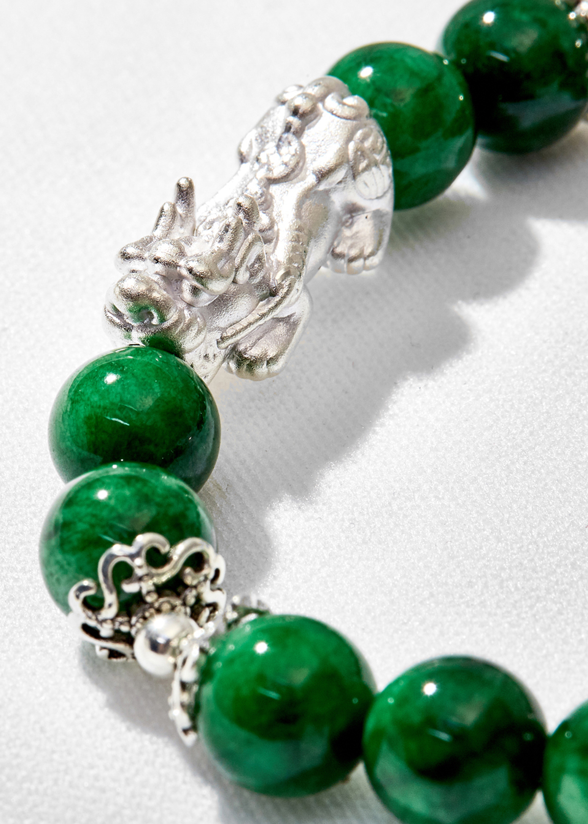 Vòng Tay Đá Thiên Nhiên Phối Charm Tỳ Hưu Bạc Thái