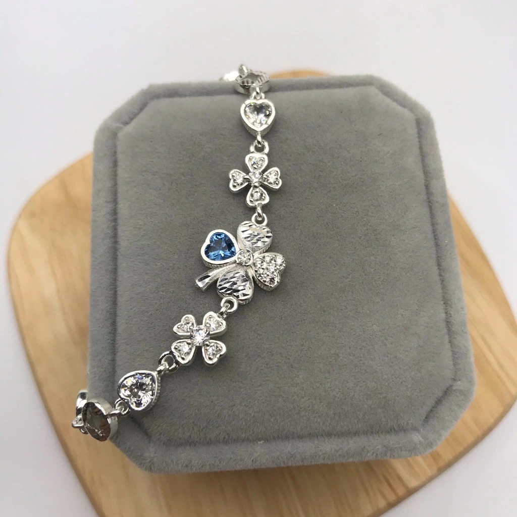 ✨Vòng Tay Lắc Tay Nữ Dây Cỏ 4 Lá Đính Đá May Mắn Bạc Hiểu Minh LTU571