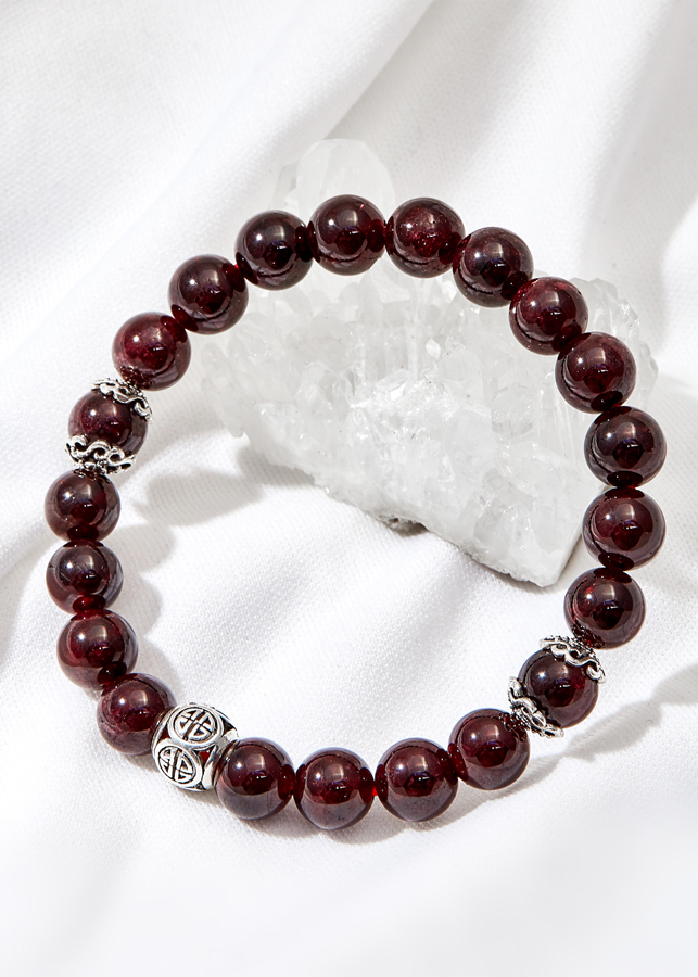 Ngọc hồng lựu có tính khơi dậy lòng can cảm, tăng cường ý trí mạnh mẽ và sự dẻo dai cũng như giúp củng cố lòng tự tôn. Ngọc hồng lựu cũng giữ tỉnh táo, làm ta thấy an toàn hơn. Nó giúp ta thấy tự tin và cho ta can đảm để đối mặt với những tình huống hay cơn khủng hoảng thường ngày. Ngọc hồng lựu xây dựng tính cách mạnh mẽ để ta tìm được sức mạnh ẩn chứa cần đến khi đương đầu với các thử thách hoặc thay đổi trong cuộc sống. Dây chuyền Ngọc hồng lựu đem lại chủ nhân của nó sức mạnh điều khiển người khác.